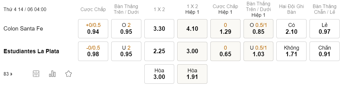 Soi kèo tài xỉu Colon vs Estudiantes: 0.95*2*0.95