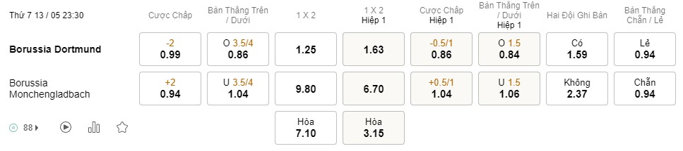 Soi kèo châu Á Dortmund vs Gladbach: 0.99*2*0.94