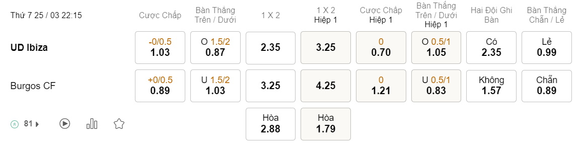 Soi kèo hiệp 1 Ibiza vs Burgos: 0.70*0*1.21