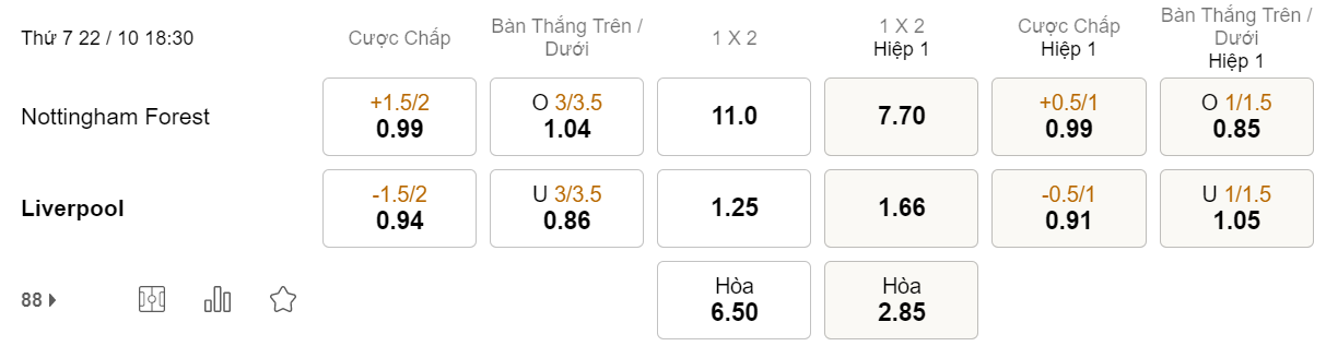 Tỉ lệ kèo Nottingham vs Liverpool
