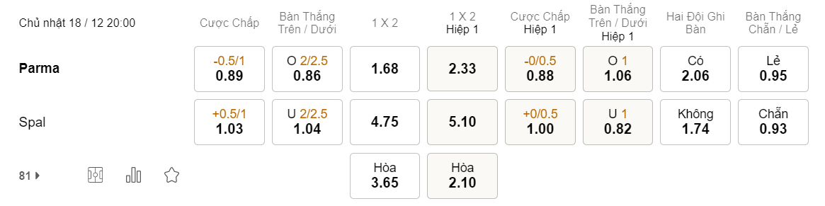 Tỉ lệ kèo Parma vs SPAL