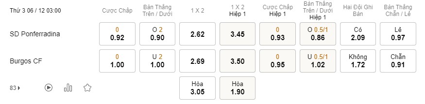 Tỉ lệ kèo Ponferradina vs Burgos