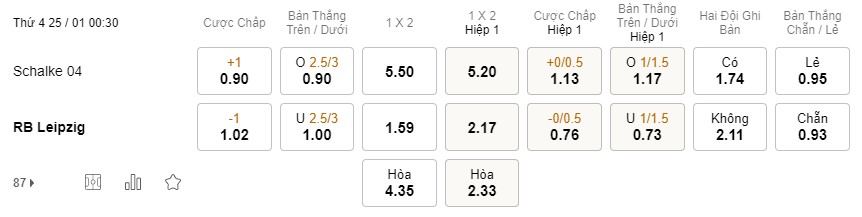 Tỉ lệ kèo Schalke vs Leipzig